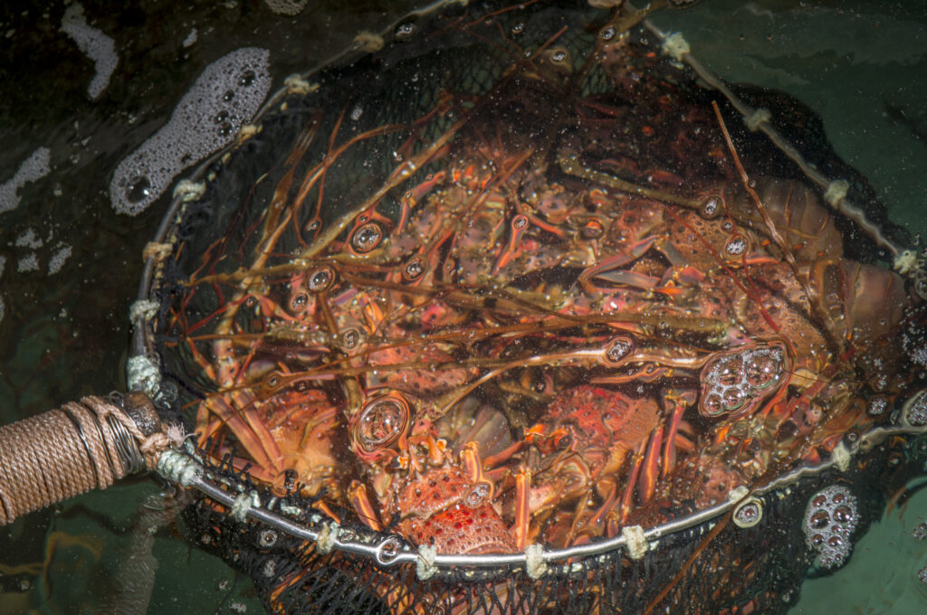 牡蠣殻と、牡蠣殻を加工した水質浄化材「ケアシェル」を併用することで、水質のバランスを保ちつつ、海水の入れ替え頻度を抑えています。これにより、水槽環境が安定し、伊勢海老にとってより自然に近い状態が維持されています。