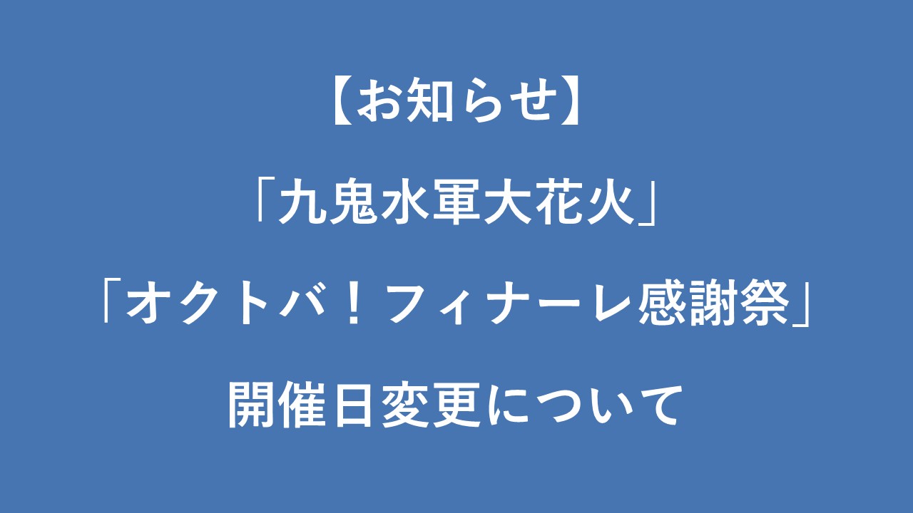 【お知らせ】九鬼水軍大花火・オクトバ!フィナーレ感謝祭の開催日変更について