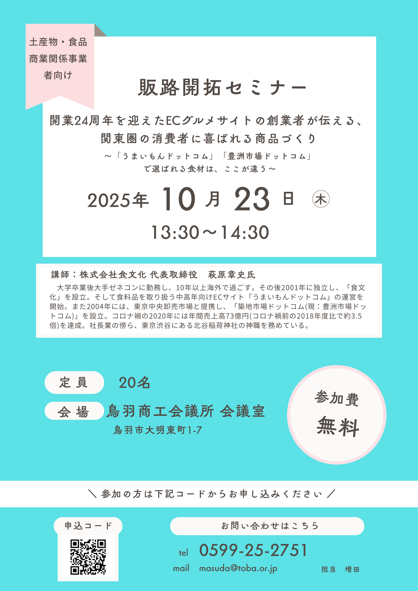 土産物・食品関係事業者向けセミナーのご案内【鳥羽商工会議所・鳥羽土産物商組合共催】