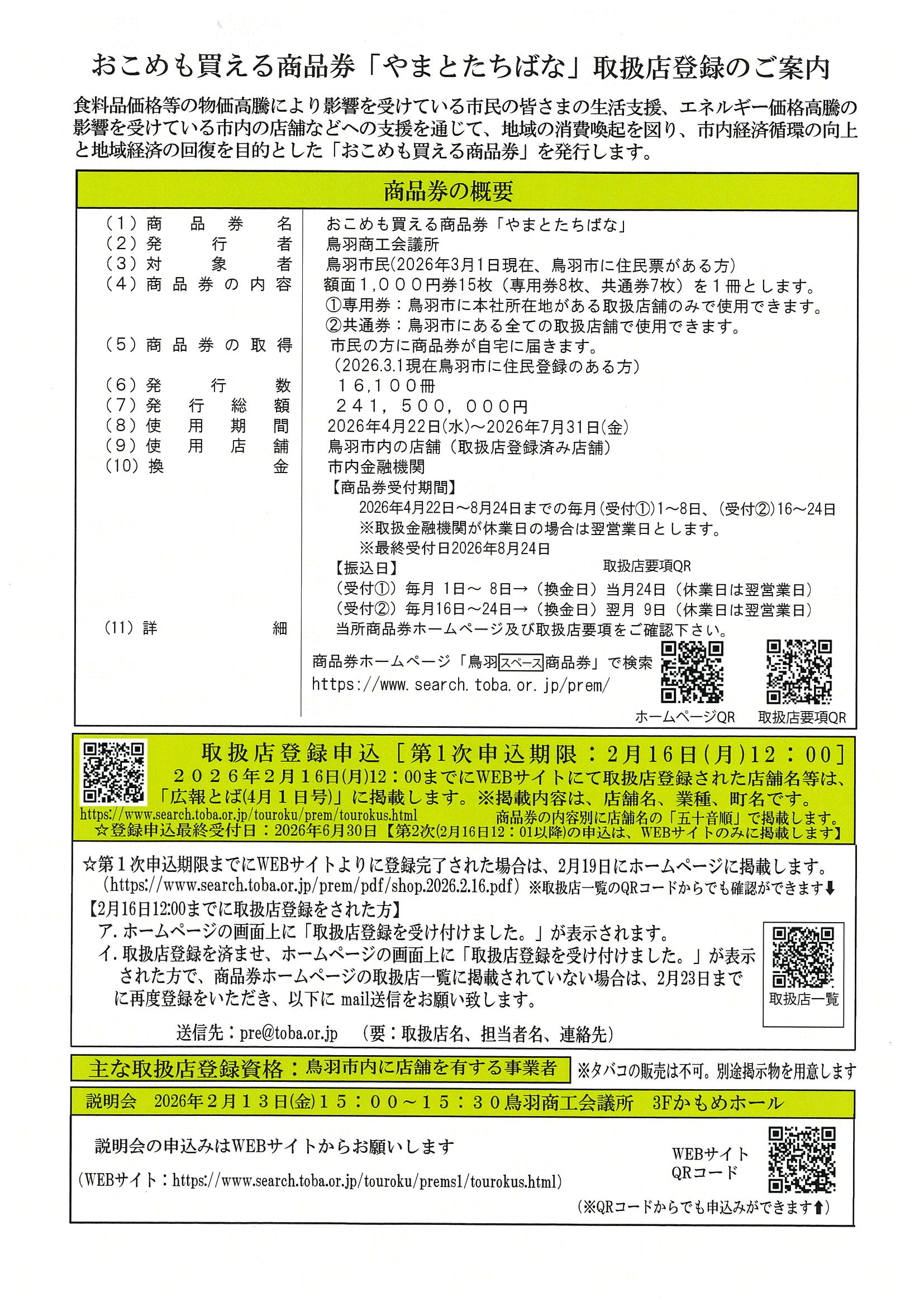 開催日 第1次締切日時 令和8年2月16日(月)12:00まで