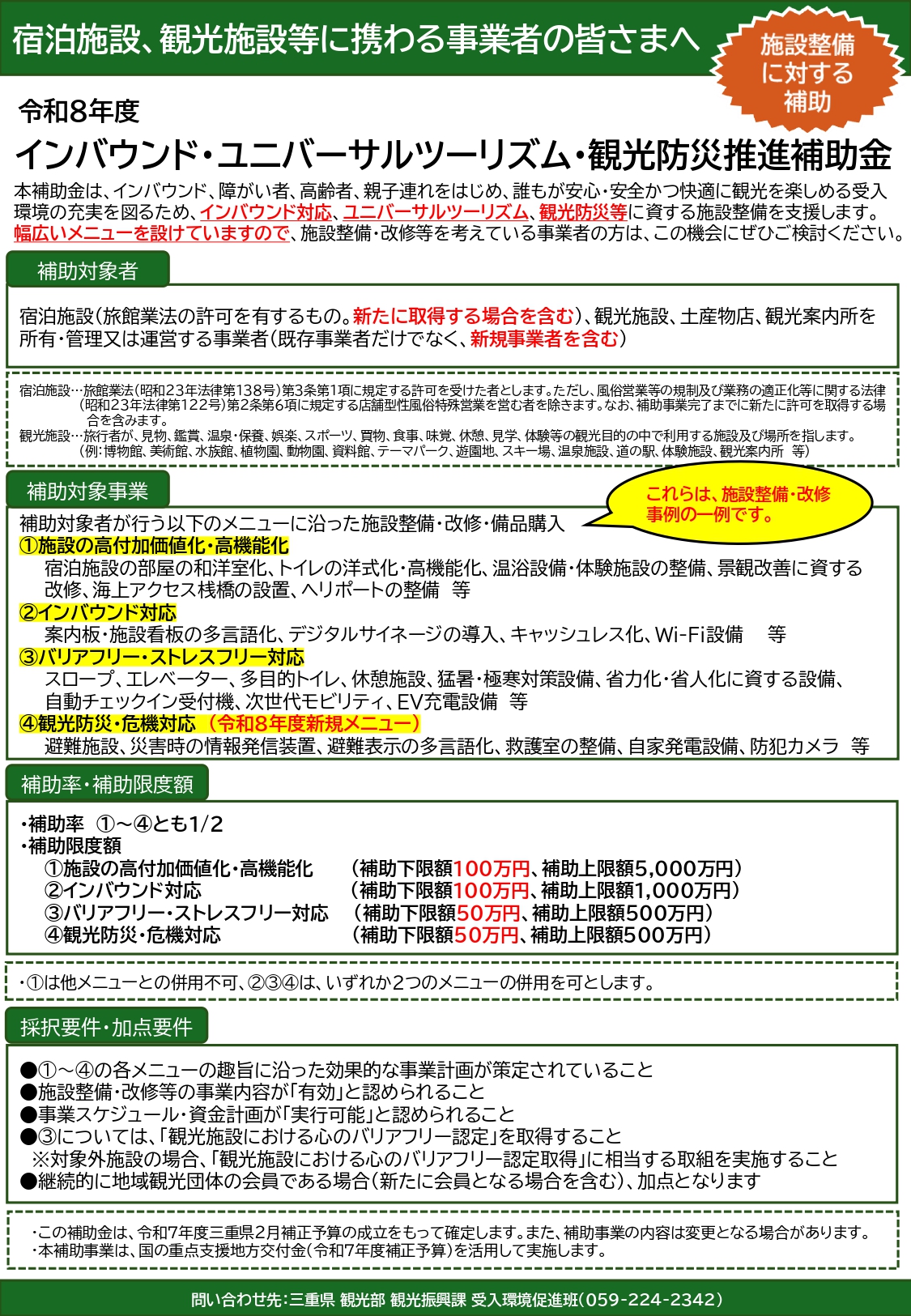 【三重県】令和8年度「インバウンド・ユニバーサルツーリズム・観光防災推進補助金」について