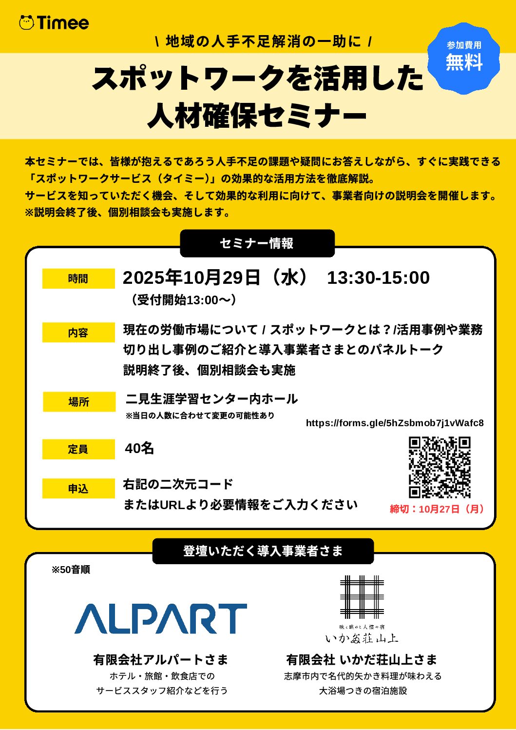【情報共有】【タイミー】スポットワークセミナーの日程について